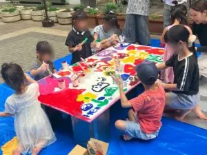 堀内美建のブースでは「外壁塗装 色塗り体験」を実施し、子どもたちが職人さながらに色を塗る姿がとても印象的でした。